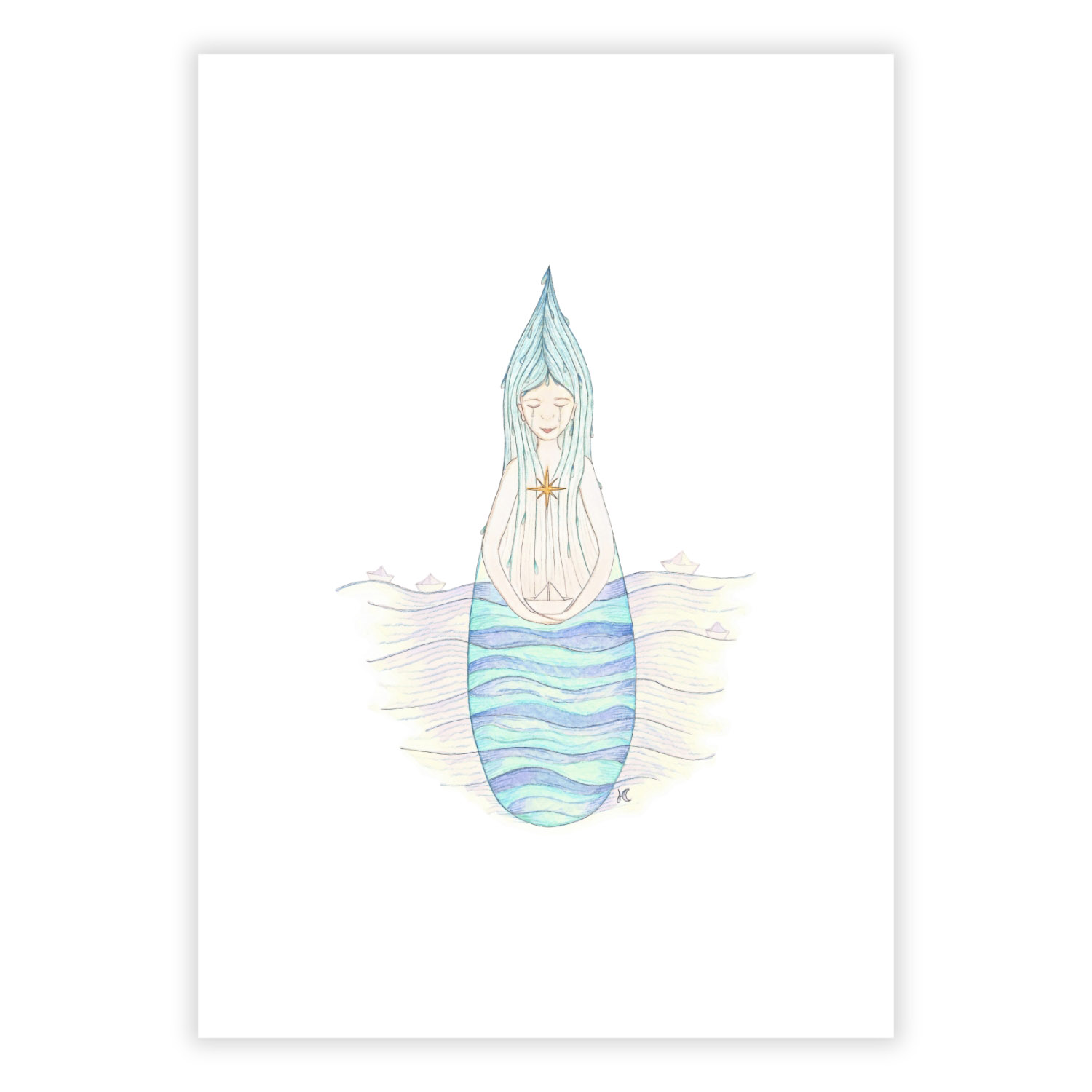 Reproduction d’aquarelle imprimée sur du papier dessin blanc 300g, accompagnée d’un chant à télécharger.